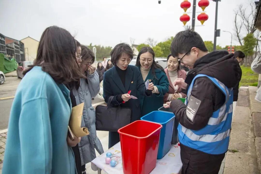 孝慈社工设置了垃圾分类互动体验,并发放垃圾分类指导手册进行垃圾分类宣传,倡导大家自觉进行垃圾分类,维护好身边的美丽乡村和美丽城镇。同时,大家还化身巾帼志愿者捡起路面的垃圾,为美丽乡村建设贡献巾帼力量。