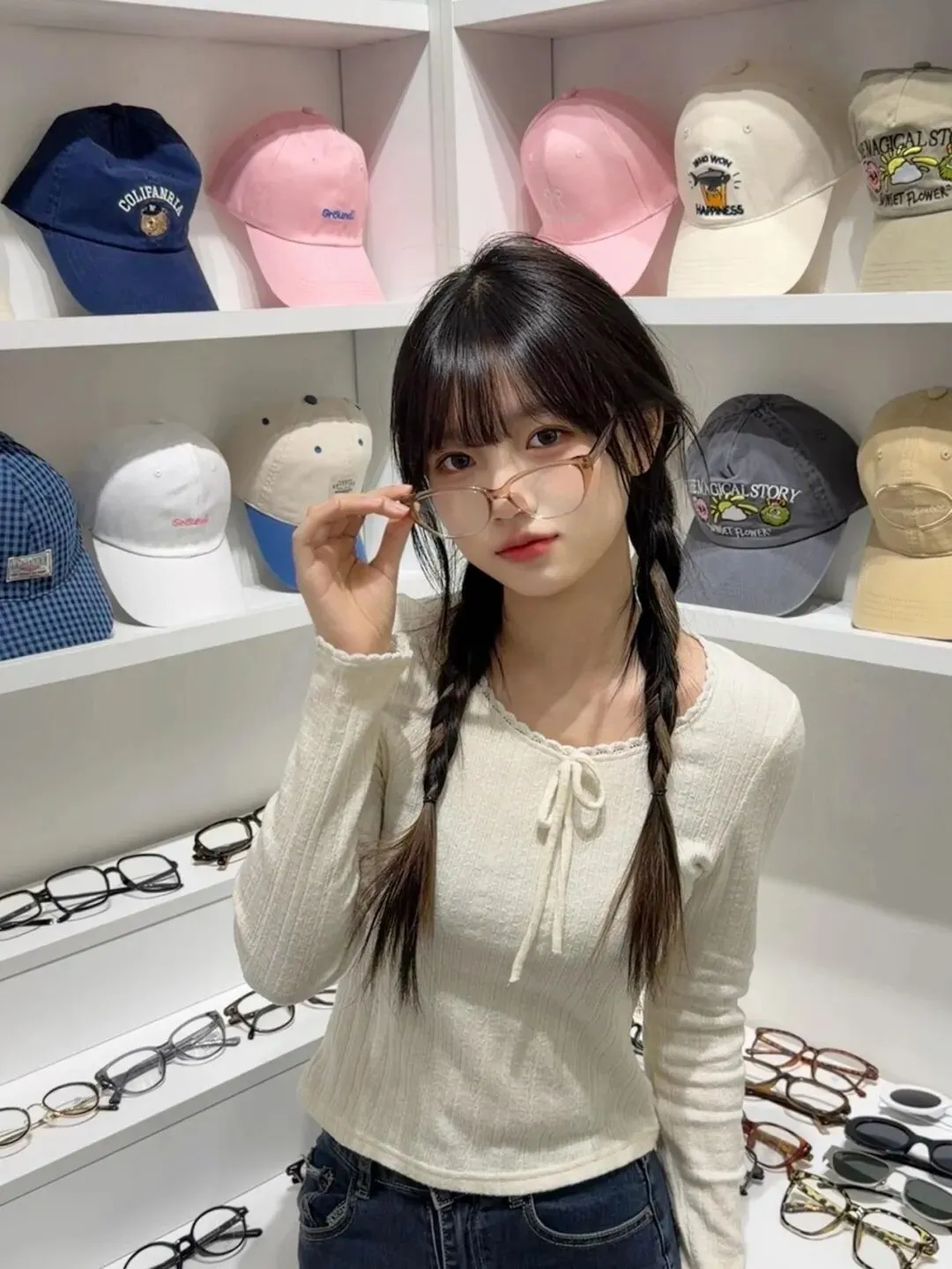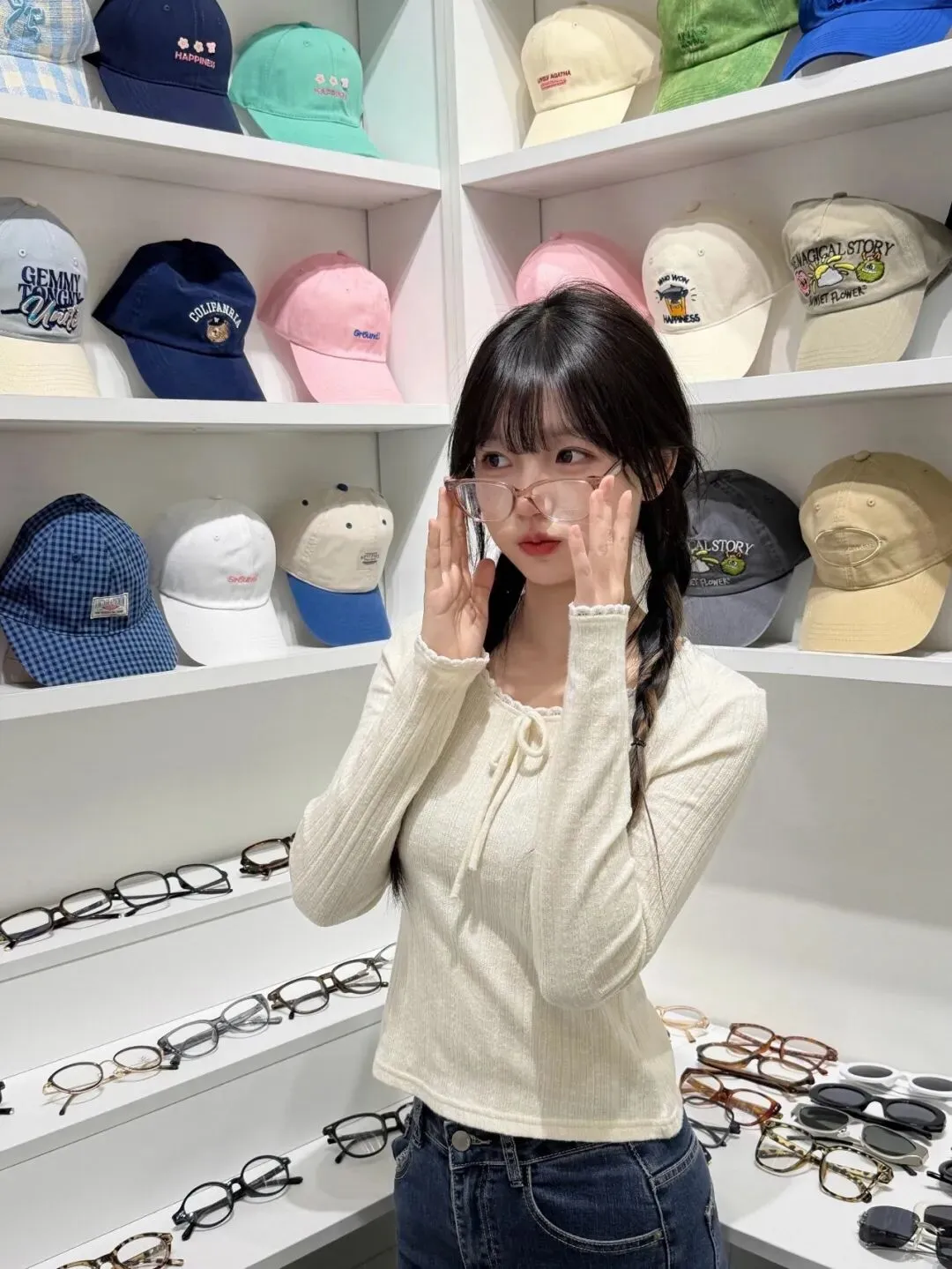 当前位置:首页>美女资讯>一条米白蕾丝上衣+牛仔裤,我用三种姿势玩转韩系甜妹氛围
