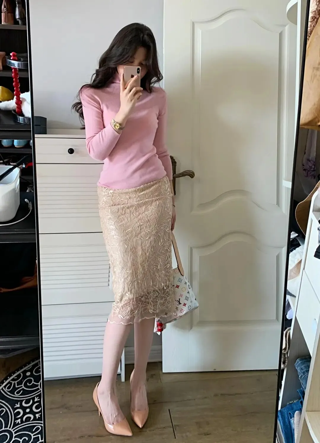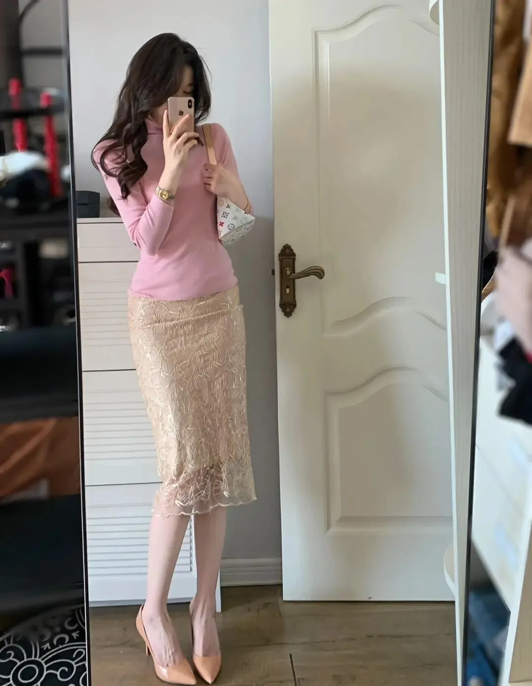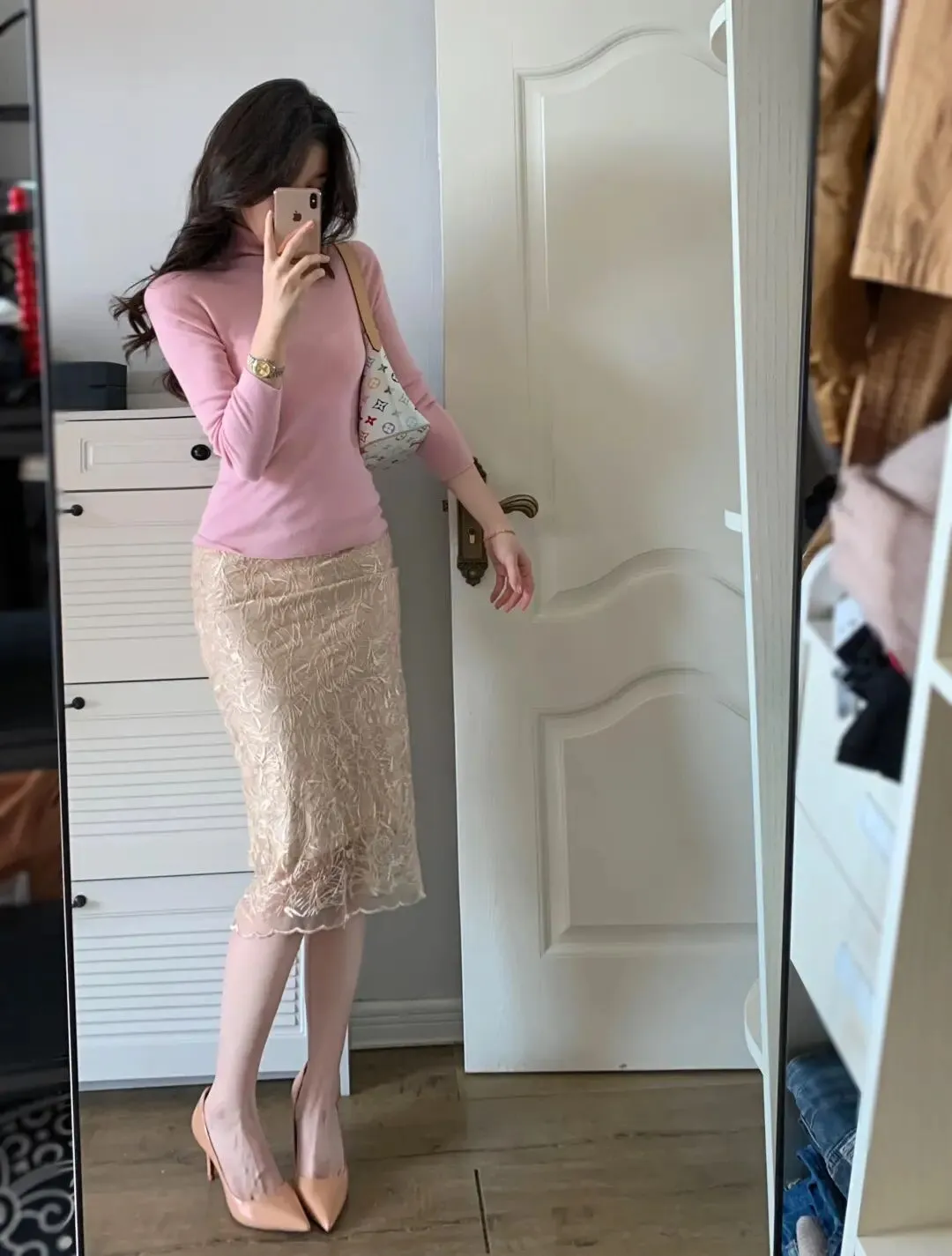 当前位置:首页>美女资讯>粉色高领+蕾丝半裙早春这样穿,温柔又有分寸感,越看越耐看!