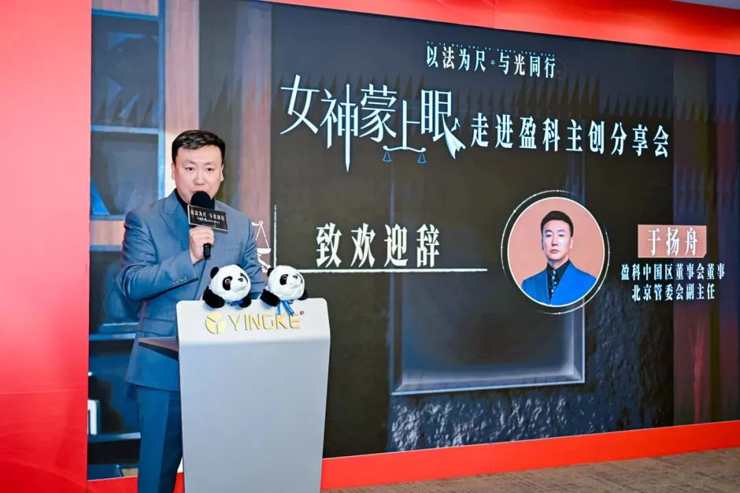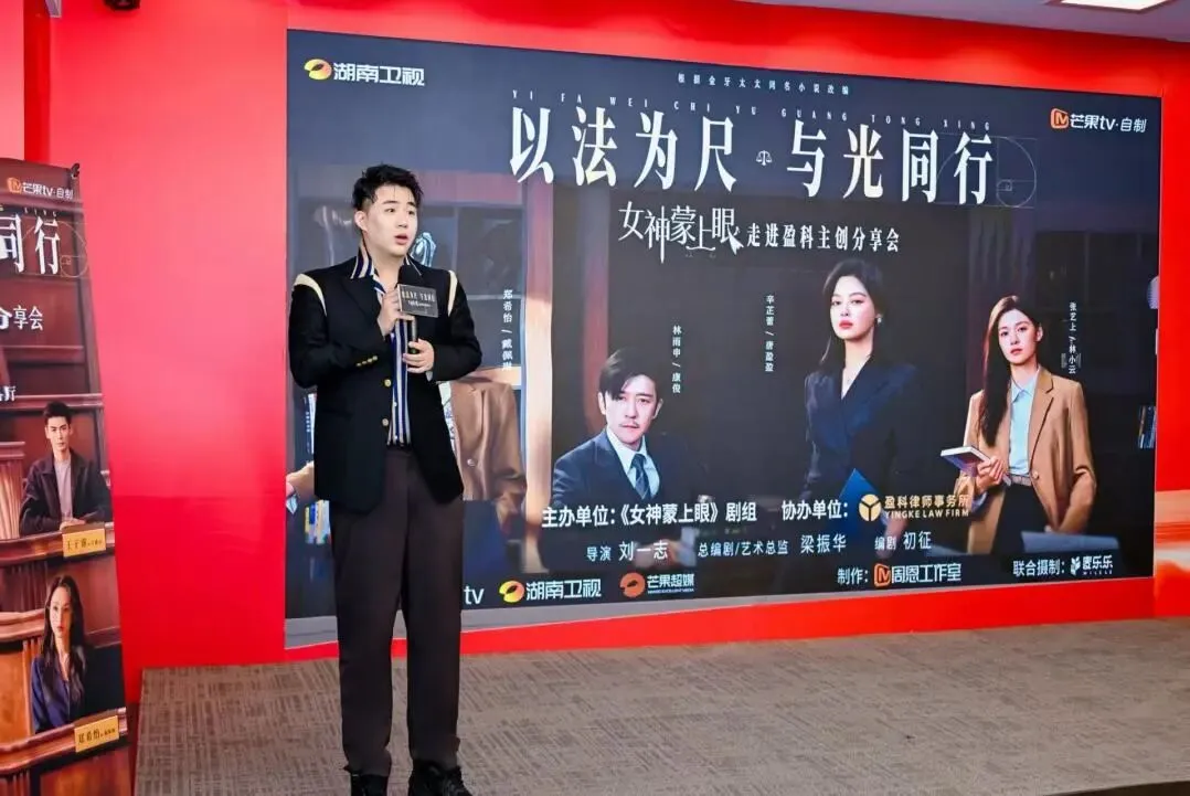 于扬舟律师在致辞中首先对《女神蒙上眼》主创团队的到来表示诚挚欢迎。他讲到,作为一家全球化法律服务机构,盈科在文娱影视、知识产权等多个法律专业领域深耕布局,为多个影视作品提供全流程法律服务,并深度参与到行业规则的构建之中。本次分享会既是盈科与主创团队回顾合作成果的重要契机,更是以影视为纽带,呈现真实司法实践场景、探讨法律伦理边界的有益尝试。期待通过本次活动,助力法律实务赋能影视创作,同时借助影视作品的传播力让法治精神走进大众,推动法治与文艺工作的深度融合、协同发展。