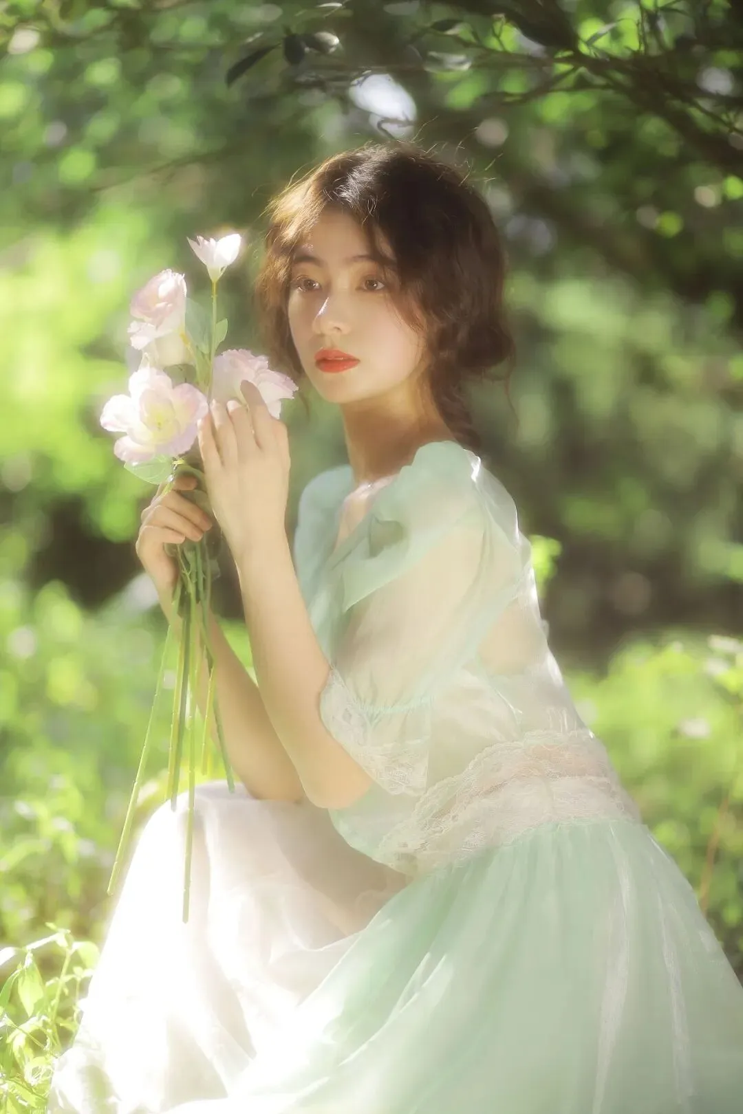 >林间花信|薄荷绿少女的森系治愈写真
