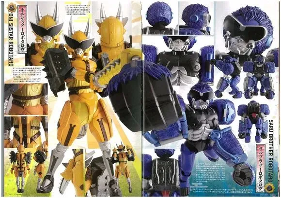 之后便是鬼妹的机械形态,和太郎一样延续了武士的造型。不过在武器方面则是变成了狼牙棒,有一说一鬼妹头上的角是真的太像犬了,肩甲则是以黑色为主,上面还有尖刺,看起来也是个不好惹的存在。猴哥的机械形态则是另外一种风格,虽说官方是为了展现他是个大猩猩,但这个头是不是有点太秃然了,另外就是这个大拳头,感觉不释放必杀技的时候,这个形态还不如之前好使。