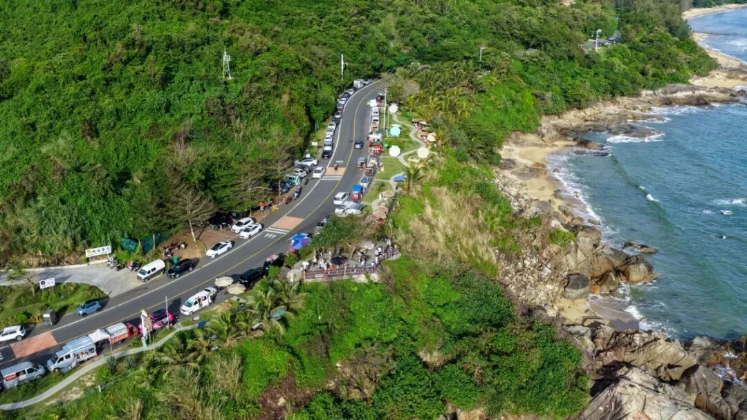 一半是椰林,一半是大海,随手一拍就是“公路电影”既视感。