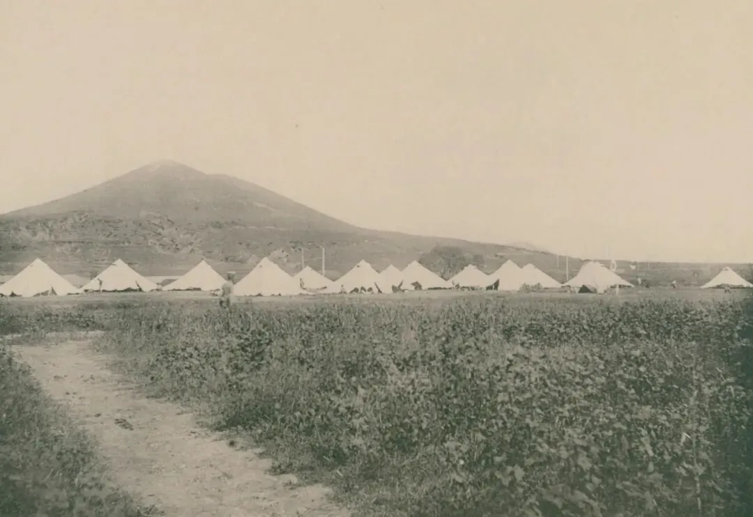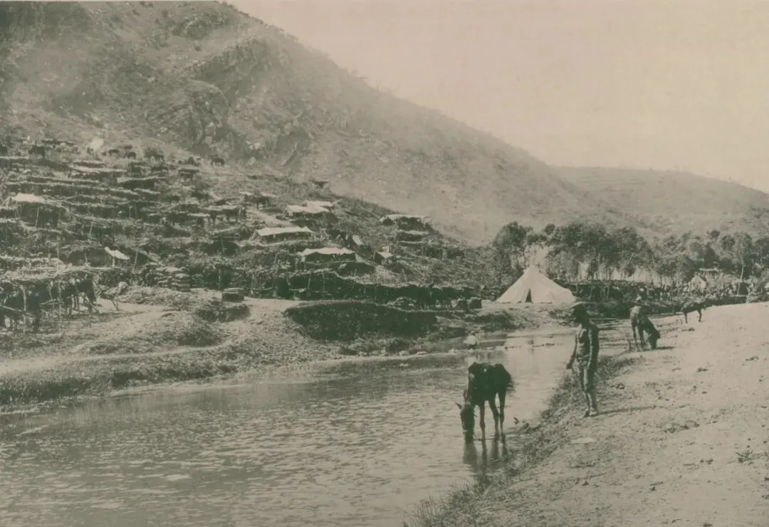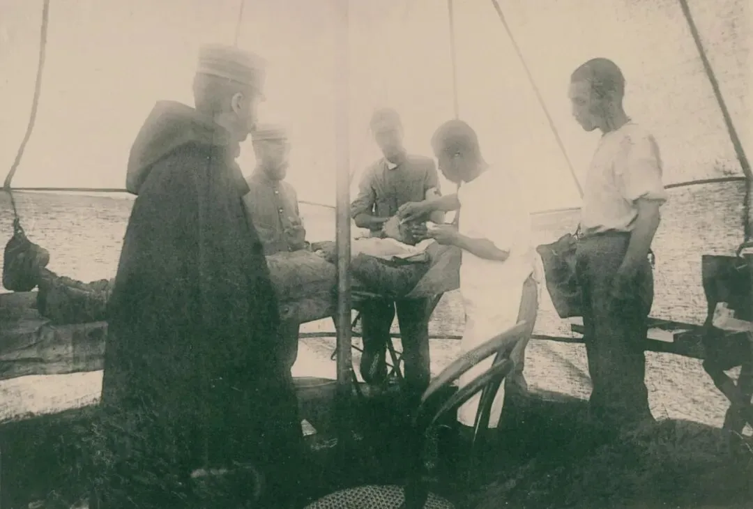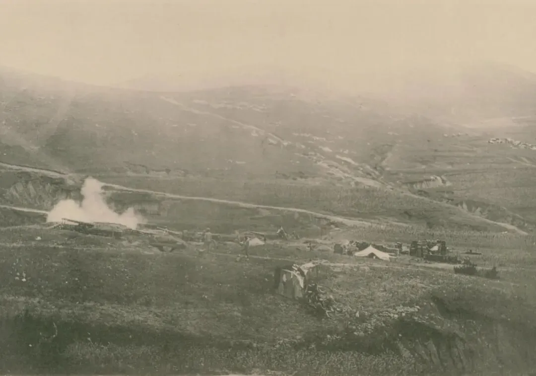日俄战争结束后的1905年3月22日印刷,同年3月25日在日本东京发行,意在炫耀其对沙俄战争胜利而发行的【日露战争写真帖】。日军第三军第一师团长松村务本及其参谋部成员,于1904年9月 24日,在高崎山(164高地)半坡营地前合影。164高地位于碾盘沟西南大约1100米处,日俄双方经过激战,被日军步兵十五联队攻占,便以该联队总部所在地高崎市命名,164高地又称“高崎山”。从凤凰山东南方的一座山上,望向第一师团战斗的情景,1904年9月19日下午4点20分。1904年8月23日下午6点,日军炮击旅顺东北部的俄军阵地。1904年8月23日午后5点,俄军炮弹在团山子附近爆炸,团山子山在龙头姜家村附近。1904年8月28日下午4点,日军步兵炮兵第三联队第五中队,在王家甸(龙头街道王家村)对旅顺东北部的俄军前沿堡垒发起进攻。1904年9月7日,天皇御使宫本侍从武官和尾头东宫武官视察慰问东龙头医院。1904年9月10日,大孤山东北麓,日军第十一师团司令部营地。1904年9月10日,大孤山下日军的炮兵马匹马厩,野战炮兵第十一联队第二中队营地。1904年9月10日下午两点,在大孤山东北方低洼地带的战斗准备,日军步兵炮兵第三联队第八中队,口径15厘米的臼炮四门。鞠家屯东北方约千米的低洼地带,步兵炮兵第二联队的阵地。1904年9月14日上午10点10分,火炮为15厘米臼炮,由破布和垫子制成的遮盖物是炮手的休息棚。1904年9月14日下午,日军针对东鸡冠山堡垒进行堑壕作业。1904年9月14日下午,大孤山北麓日军野战炮兵第十一联队的马匹、马厩,以及该联队的营地。1904年9月14日,鞠家屯东南方约一千米的一处凹地,鞠家屯在大孤山西北方向。日军将28厘米口径榴弹炮运往于大山东麓的攻城炮阵地,墓碑处是战死的日本人坟墓。日军将28厘米口径榴弹炮运往于大山东麓的攻城炮阵地1904年7月26日下午,韩家屯日军野战病院手术室。1904年8月10日下午5点,中国民工正将日军伤员送往长岭子火车站附近的一座野战医院。日军在邱家屯西南方谷地收集缴获的炮弹,这些炮弹是第九师团在攻占盤龙山堡垒时缴获的。1904年9月28日,各师团长及外国武官,在第三军司令部屋后搭建的帐篷中参加宴会。日俄战争给中国人民带来了直接的生命和财产损失,严重践踏了中国主权,使清政府在国际上颜面扫地一蹶不振,为日本后续侵华埋下伏笔。这段屈辱历史,也是中华民族集体记忆中抹不去的伤痛。链接: