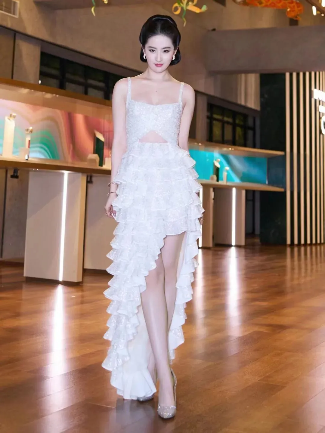 172cm的身高搭配纤细身材,穿起礼服来笑的有种自信明媚的美感。