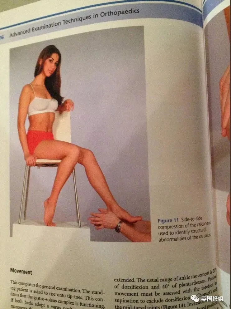 这本书叫做《高级骨科检查技巧》(Advanced Examination Techniques in Orthopaedics)。听起来很无聊,但“书中自有颜如玉”:好几张配图都是大美女,而且身材姣好、穿着透明,面带挑逗地看着镜头: