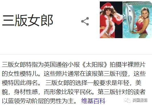 三版女郎是什么?简单解释一下,就是专门为《太阳报》拍摄性感照的姑娘们,她们的照片会出现在报纸的第三版,因此得名。