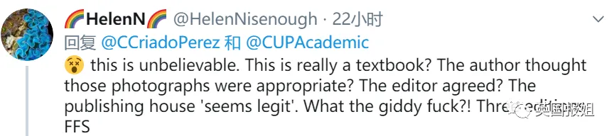 “假如你们以为这本书已经在新版本中被‘现代化’了,那你就大错特错了。@剑桥大学出版社 为什么你们总是使用这些物化和贬低女性的图?”