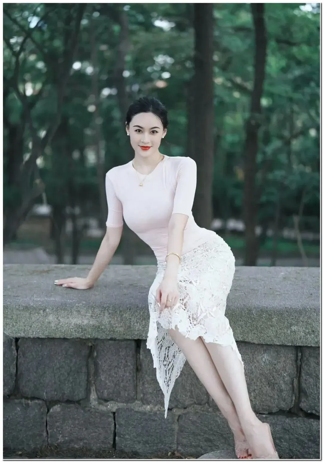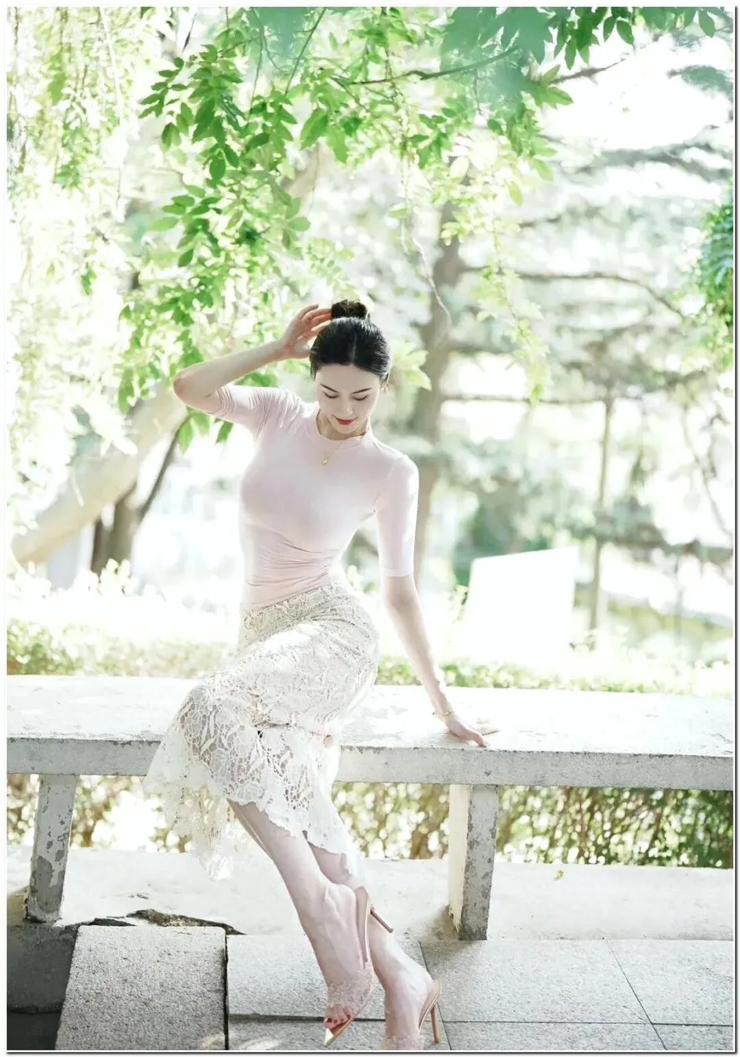 今天是公园里的“人间水蜜桃”本桃~粉色紧身 T 把身材裹得严严实实(全程吸肚子救命🆘),白色蕾丝半裙若隐若现透点肉 —— 纯欲天花板和温柔大姐姐风撞了个满怀;裸色细高跟直接把脚背算进腿长里,往石台上一坐,绿树荫衬得这一身粉白简直白到发光,老王看了都得迷糊!
