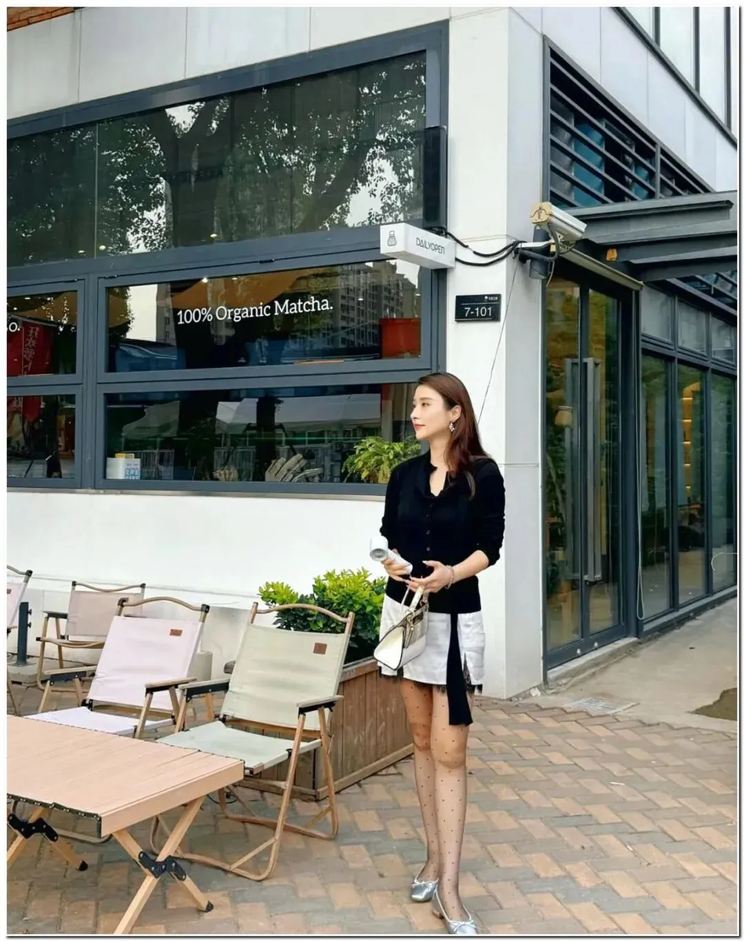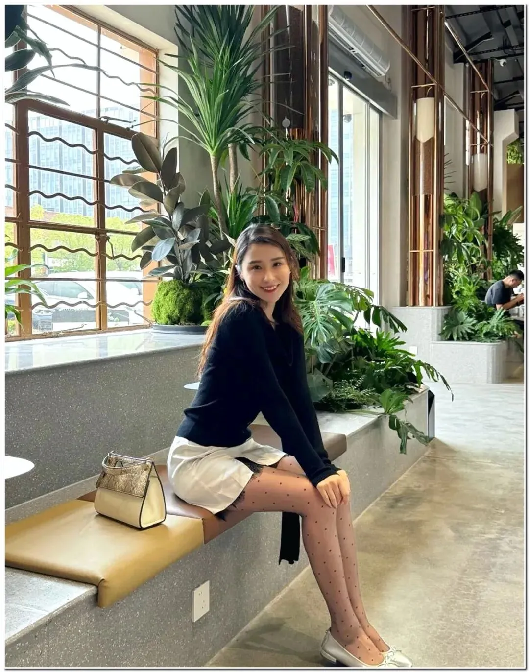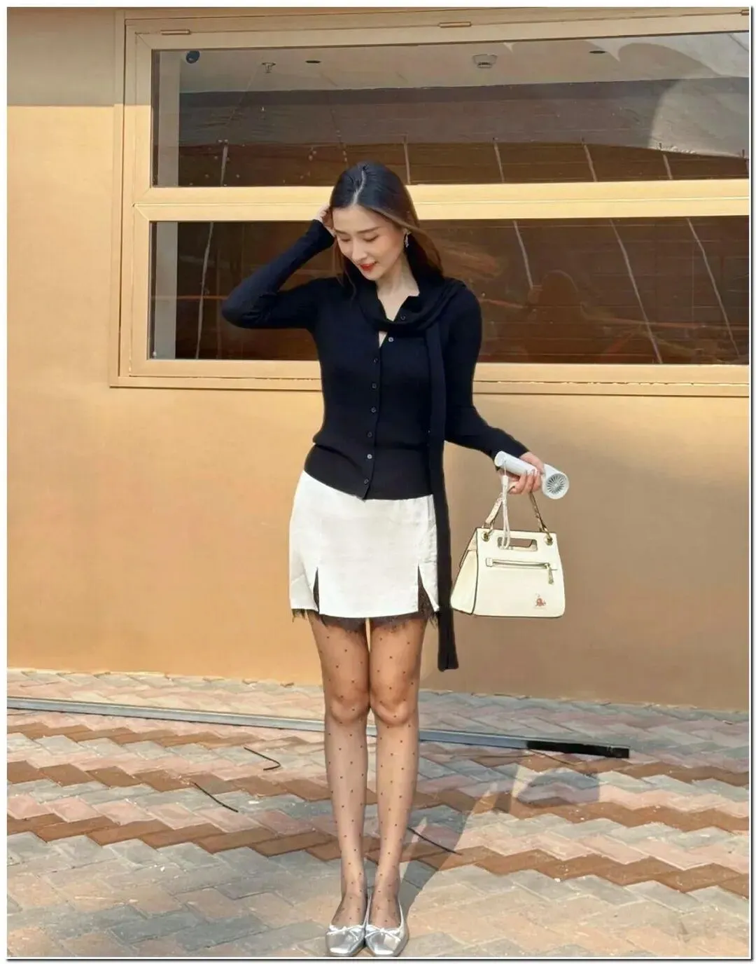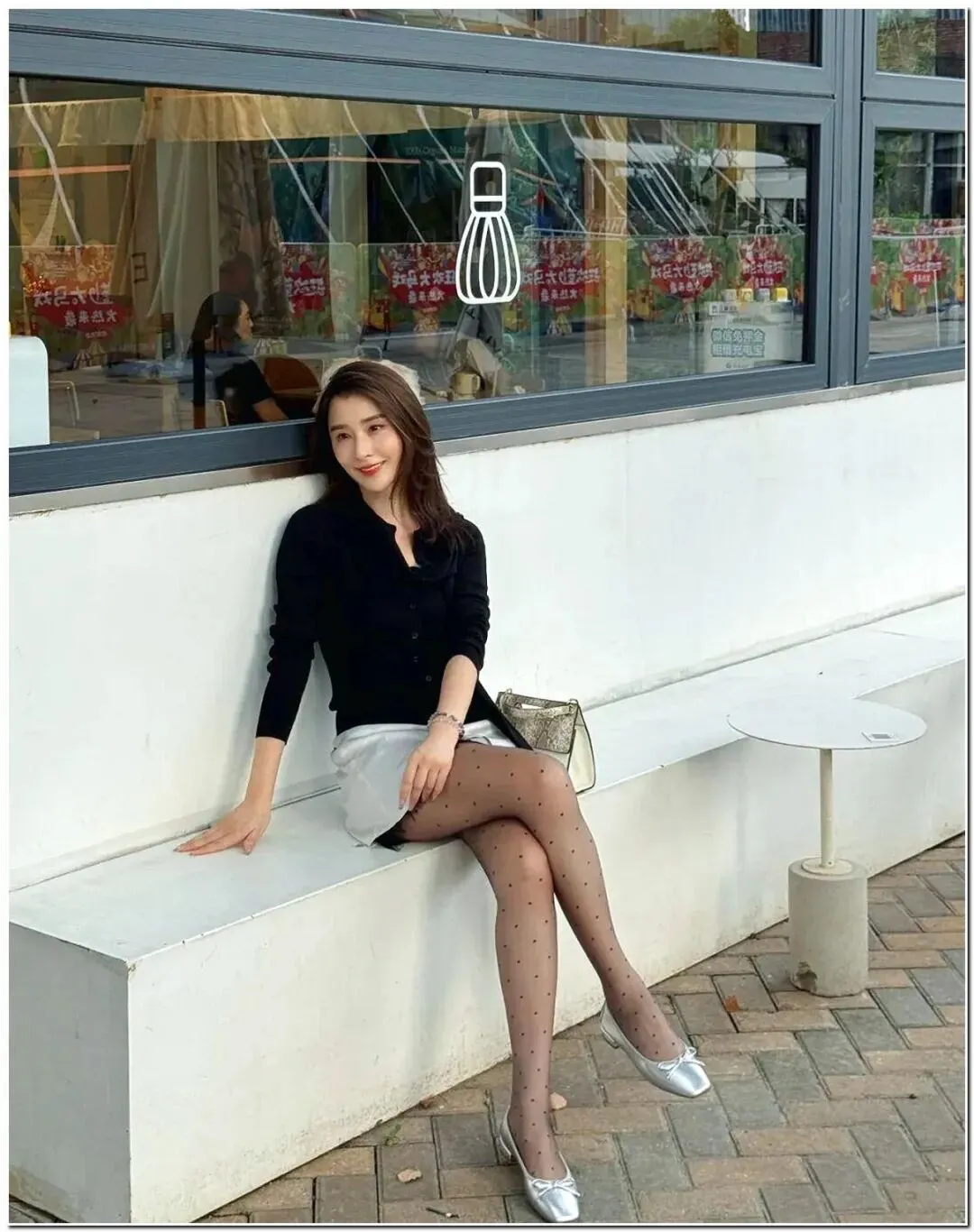 今天是街头的“法式在逃千金”~ 黑色针织衫把直角肩修饰得刚好,自带飘带围巾超显脸小,配条蕾丝边短裙瞬间拿捏纯欲风 —— 慵懒随性和精致感撞得又美又有张力;波点薄黑 + 银色芭蕾舞鞋把腿衬得“又细又直”,搭个手提包往路边一坐,下午茶背景衬得这一身黑白配更显贵!