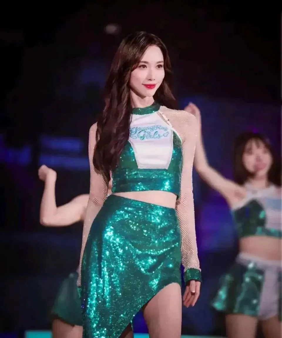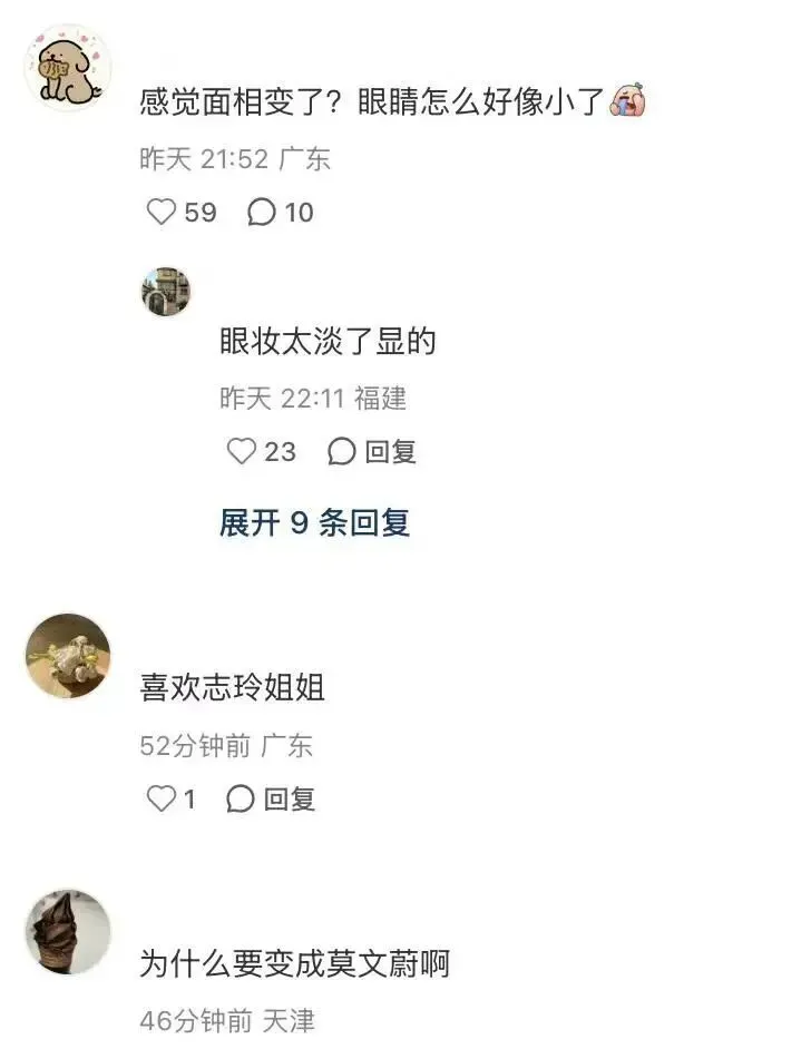镜头近距离下,其脸部线条失去往日柔和感,膨起的苹果肌显得格外僵硬,削尖的下巴突兀感明显,原本灵动的双眼肉眼可见地变小,连标志性的长发也褪去光泽,发丝枯黄干燥,难掩岁月与生育留下的痕迹。