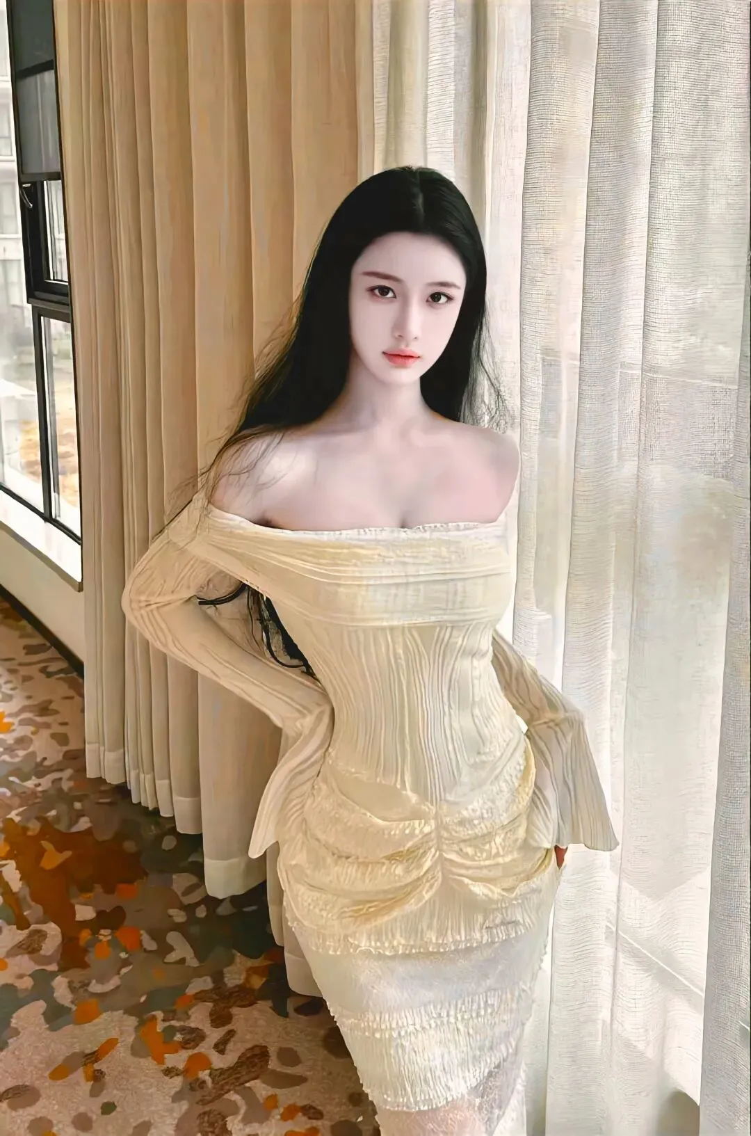 美女模特、镜头下的黑玫瑰,拍出御姐范!黑色系穿搭在酒店的大片展示~