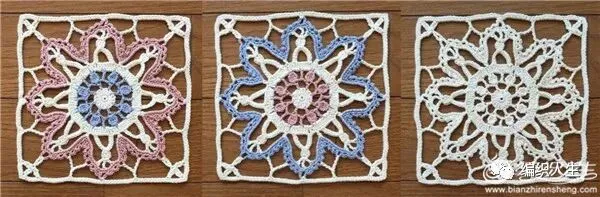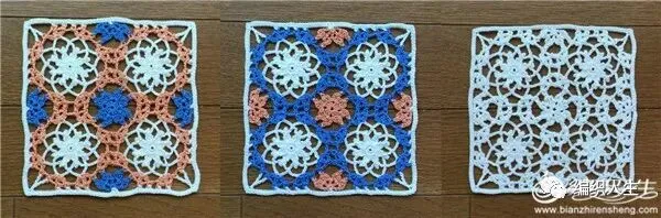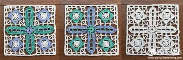 有时花样款式不用太多,只要改变颜色拼搭就可以形成新的风格,如此一款单元花就可以钩出多款。