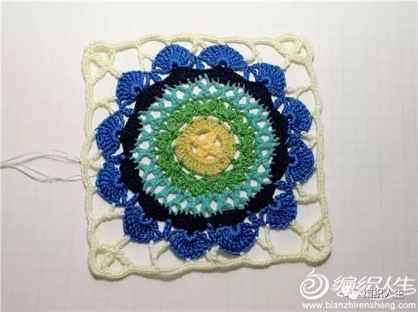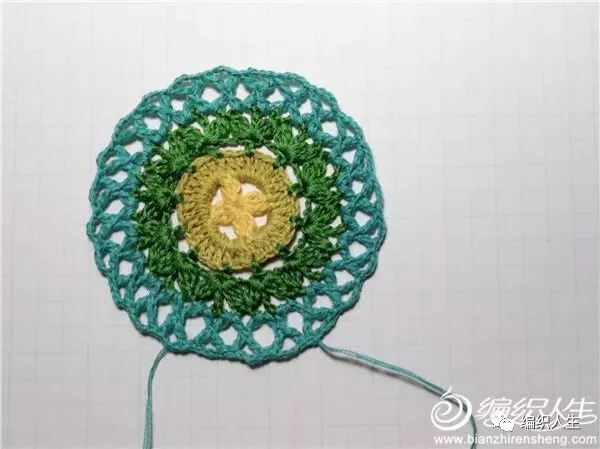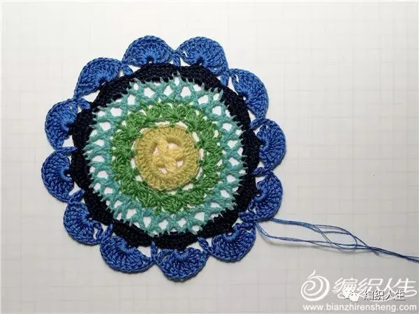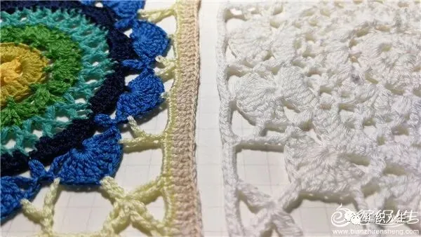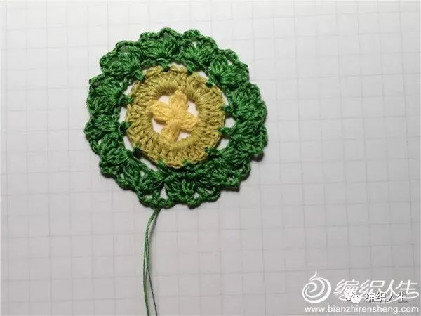 做为独立的单元花,锁针及短针边太过单薄,即兴加了一组长针