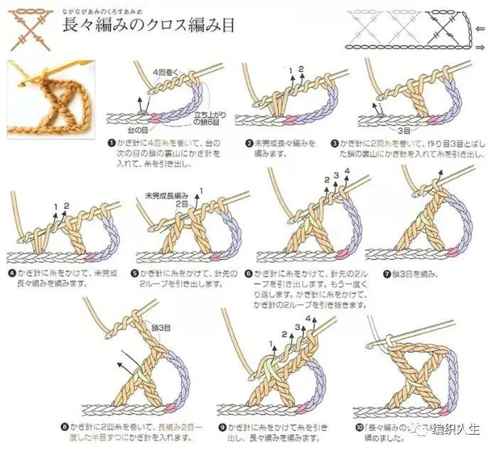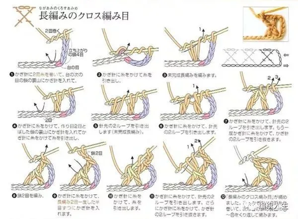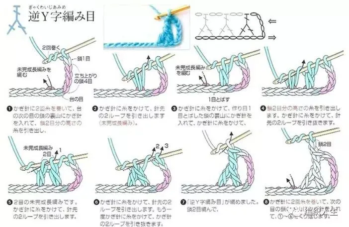 最后附上倒Y字针及十字交叉针的钩法图例: