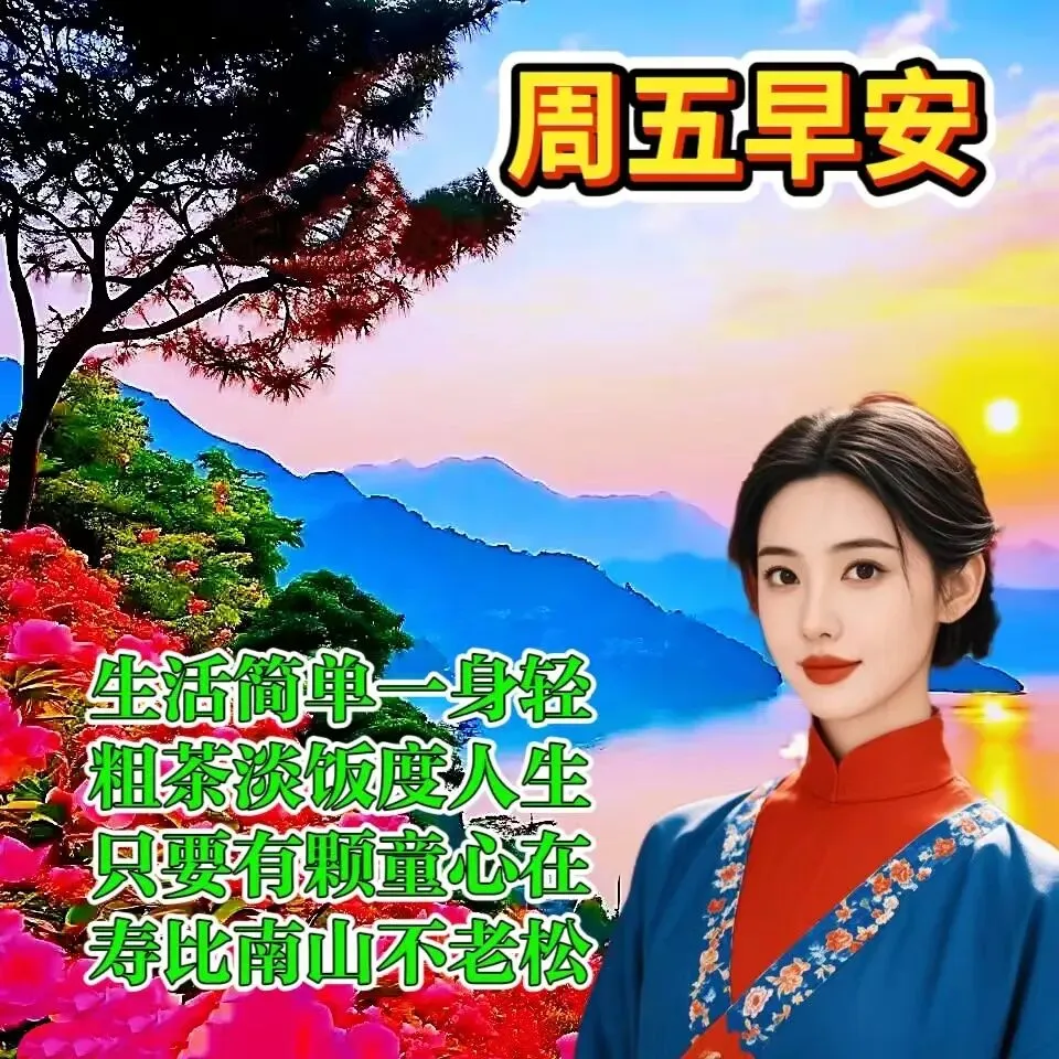 大清早,问个好,开心快乐无烦恼,送吉祥,送健康,平平安安度时光!今天喜,明天乐,天天热爱新生活,周五早上好!