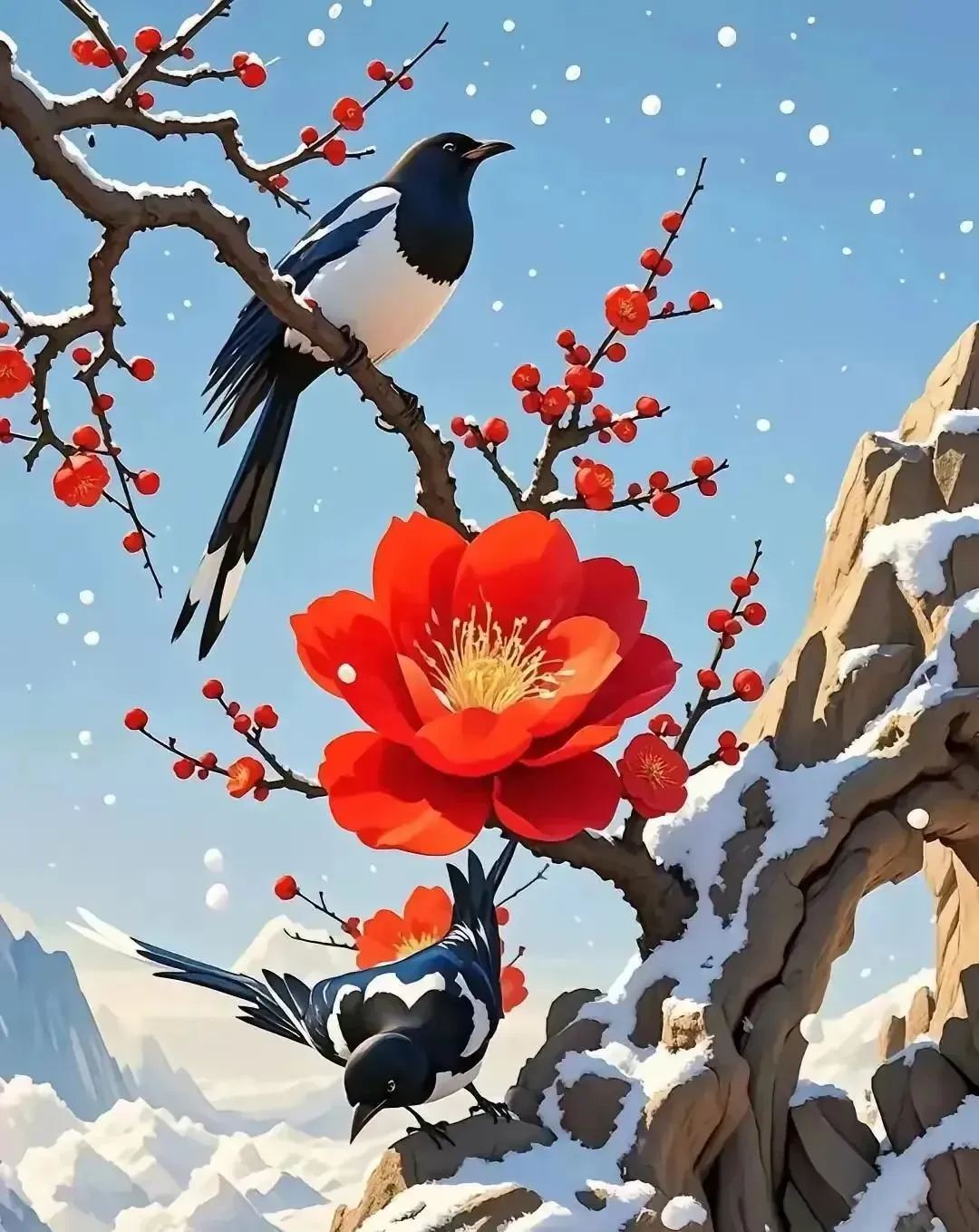 枝头的梅花是二月的信使,羞红了脸在风中张望。像一团燃烧的火焰,如一片落下的晚霞,似一颗闪烁的星星。它们挤在一起窃窃私语:春天要来啦,祝你今天也灿烂,早安!