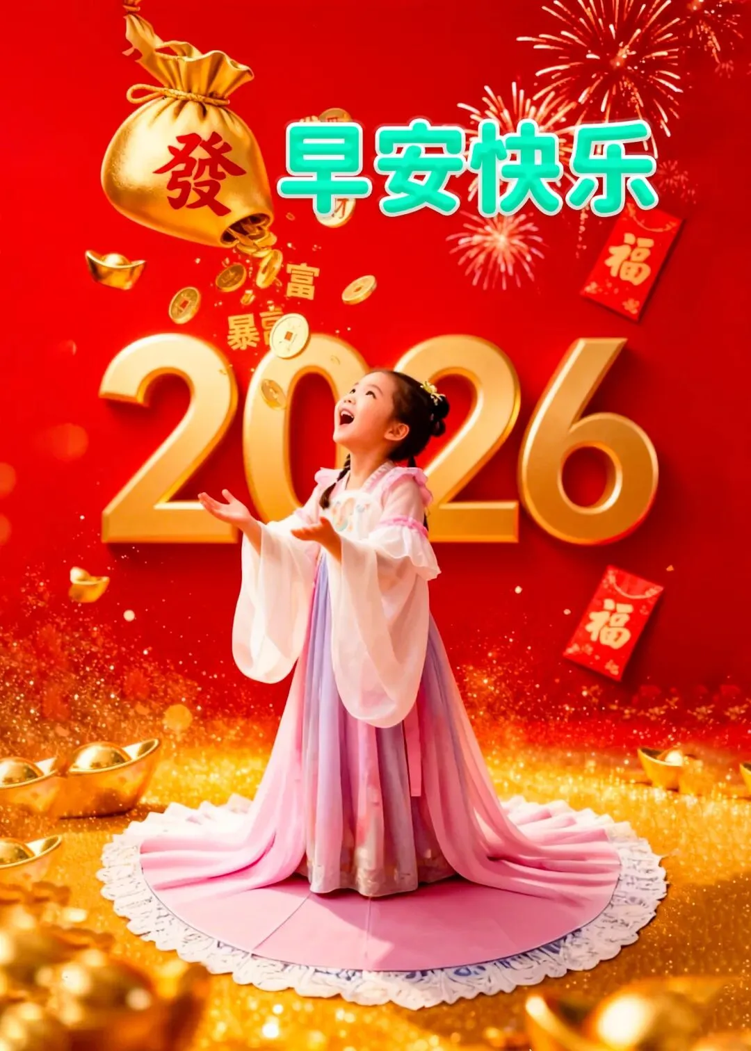 2026.2.6日开心萌娃祝福图片:2月的你一定要开心快乐呀