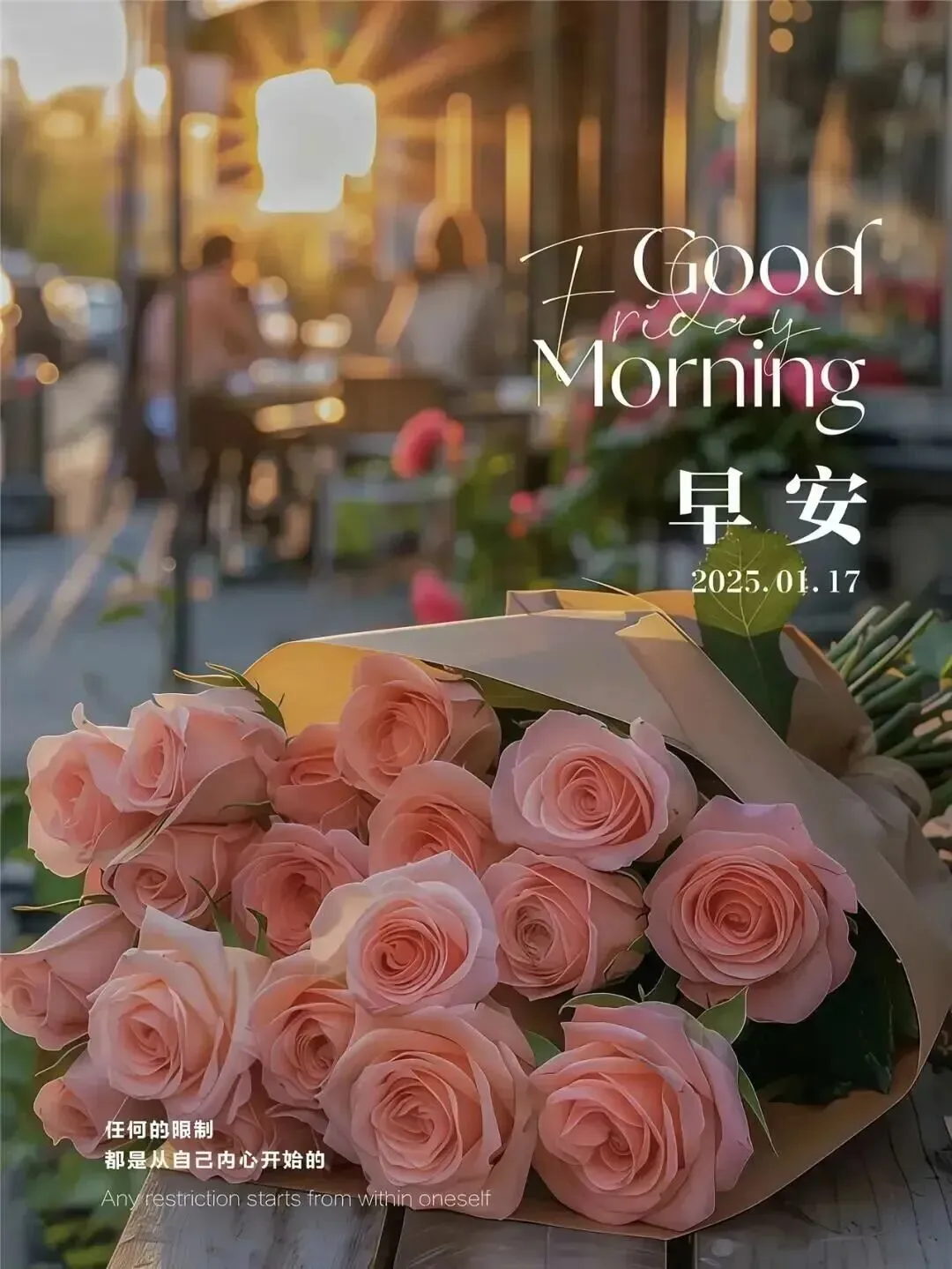 ☀️ 早安,周五快乐!一周的时光悄然走过,愿你在这美好的清晨,被幸福与温柔包围🌿 工作顺心不慌乱,生活舒心多欢喜,烦恼清零,快乐满盈,带着期待迎接周末,平安健康,事事皆圆满🌸