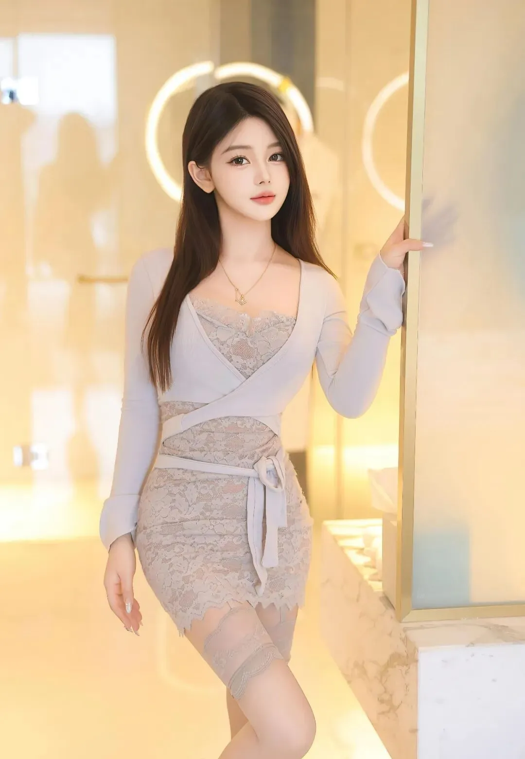浅灰蕾丝裙 + 绑带上衣|把酒店走廊穿成温柔画报,这才是纯欲甜妹的正确打开方式