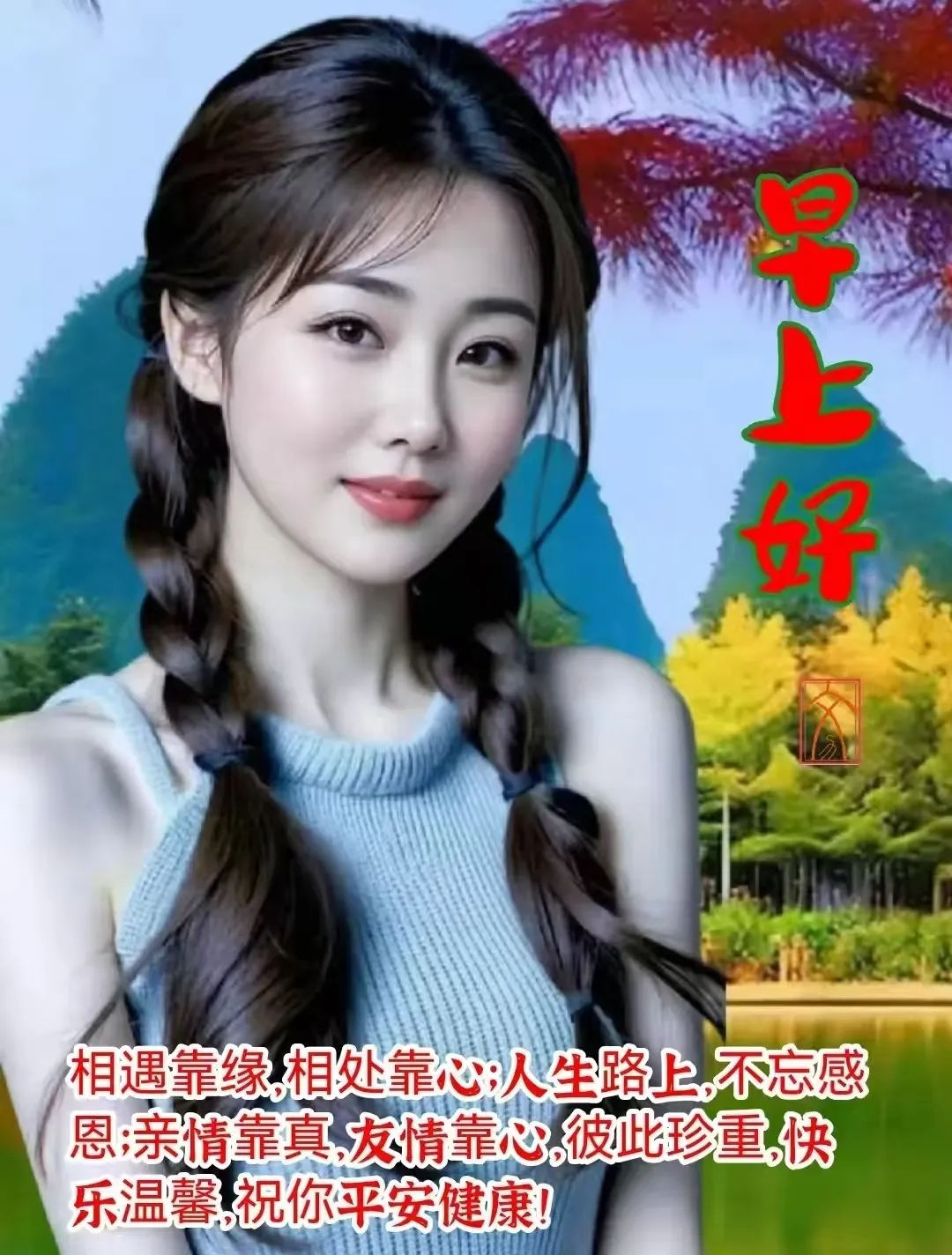 情谊没有时间差,问候说明在牵挂;祝福不分早中晚,心诚点亮你我他;富贵未必人生美,健康才是大赢家,早安!