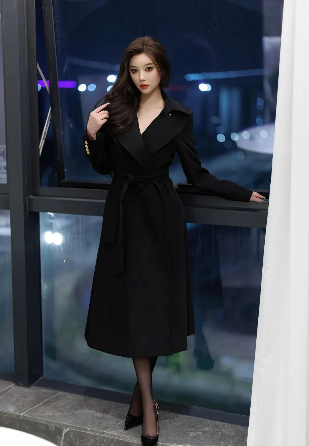 黑大衣 + 蕾丝黑丝|夜色下的致命诱惑,这才是御姐的正确打开方式✨