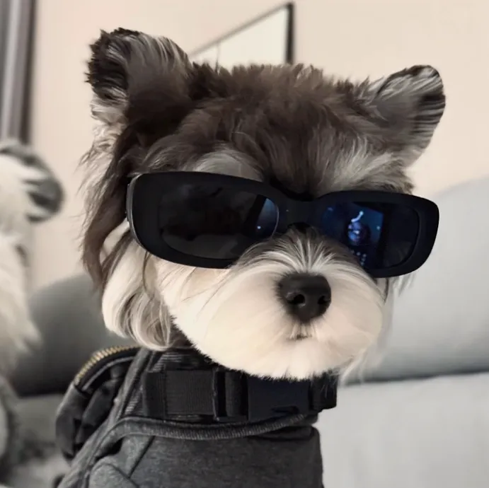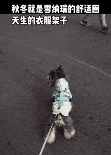 雪纳瑞——狗中建模怪,行走的衣架子。它们脖子长、腿长、头小,所以基本上不挑衣服!自身还是百搭的黑白色,显得衣服很高级。