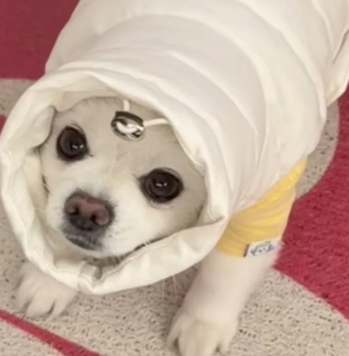 你的狗狗也很可爱,就是穿完衣服有点像蛤蟆...