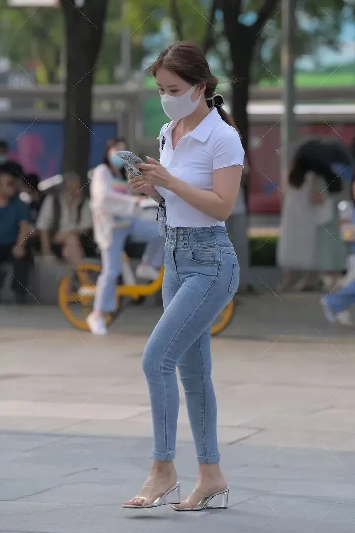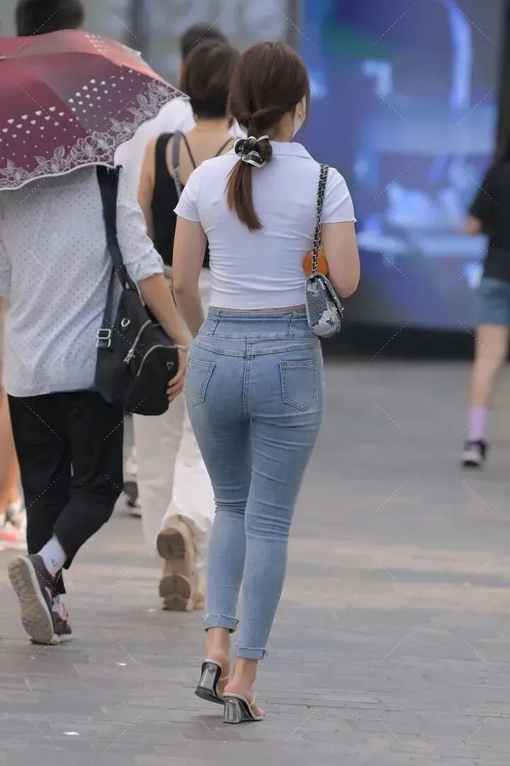 .时候正面.看普普通通.,一转身.却让人心动.。白.PO.LO衫.加紧身牛.仔裤,.背影干干.净净。头发.松松扎个低.马尾,发.圈上带点蝴.蝶结装.饰,甜美.感刚刚好.。亮片包.包斜.挎在身上,.转身的瞬.间都在发光.