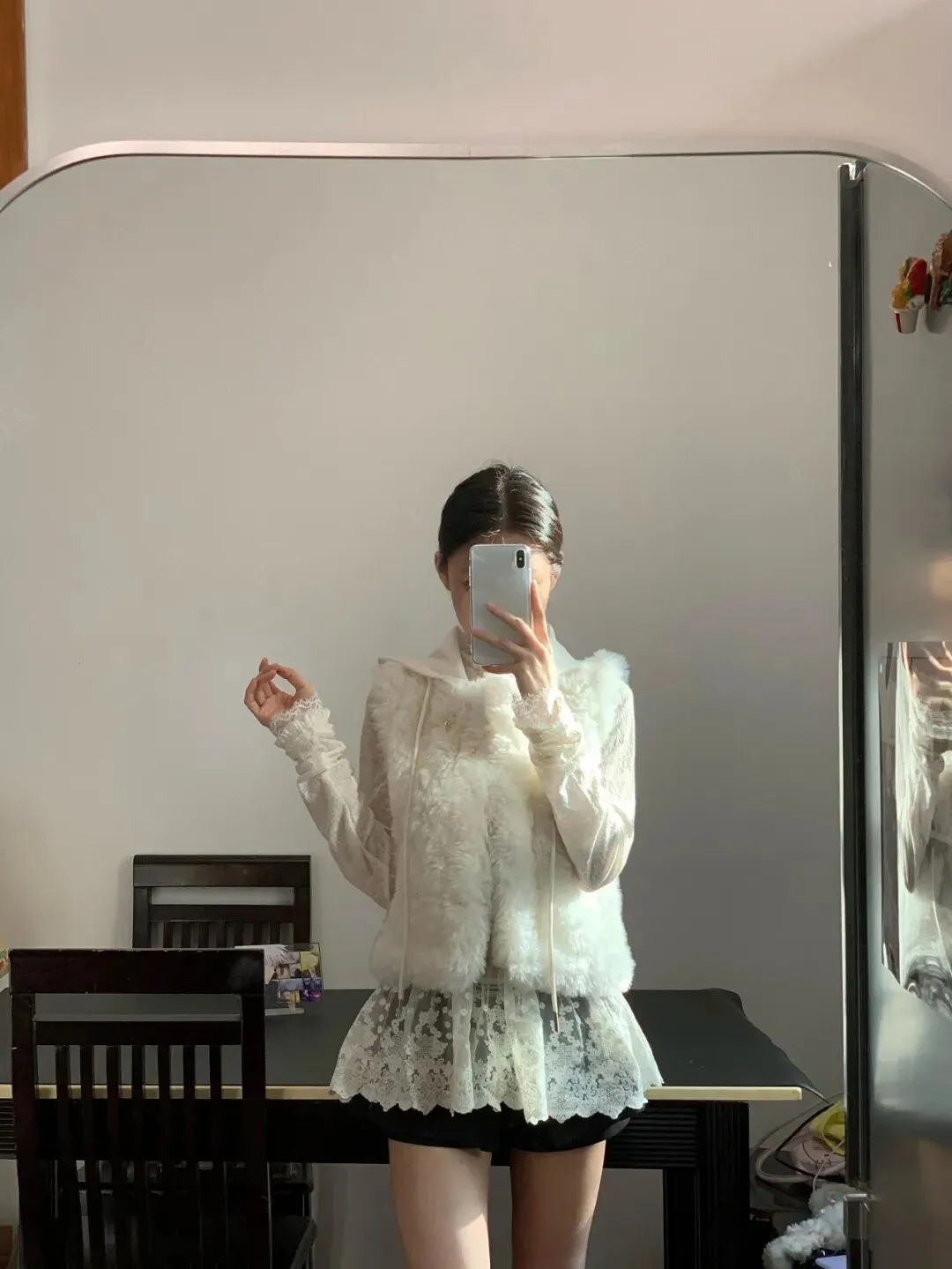 当前位置:首页>美女资讯>这套白色毛绒马甲 + 蕾丝裙真的太温柔了!