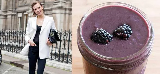 Karlie Kloss的早餐在简单干净的基础上保持了口感上的美味,比如她爱的黑莓冰沙。用杏仁牛奶、一勺巧克力蛋白粉,一根香蕉和一杯黑莓搅打而成。