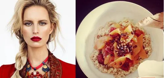 Karolína Kurková的“御用秘方”是自制的素食燕麦组合。首先她会将番石榴和石榴汁一起煮汁,将苹果片、肉桂、丁香、橙汁和柠檬汁加进去,直到水果煮软后再加入燕麦。最后加上一些可可,这是将碳水化合物最好的吸收方法之一。
