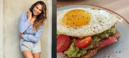 Chrissy Teigen说这是她“最爱的简易早餐”。她的方法是,一个煎蛋、一个西红柿切片,搭配上火腿、牛油果泥以及红辣椒片,用全麦面包夹住。非常美味。