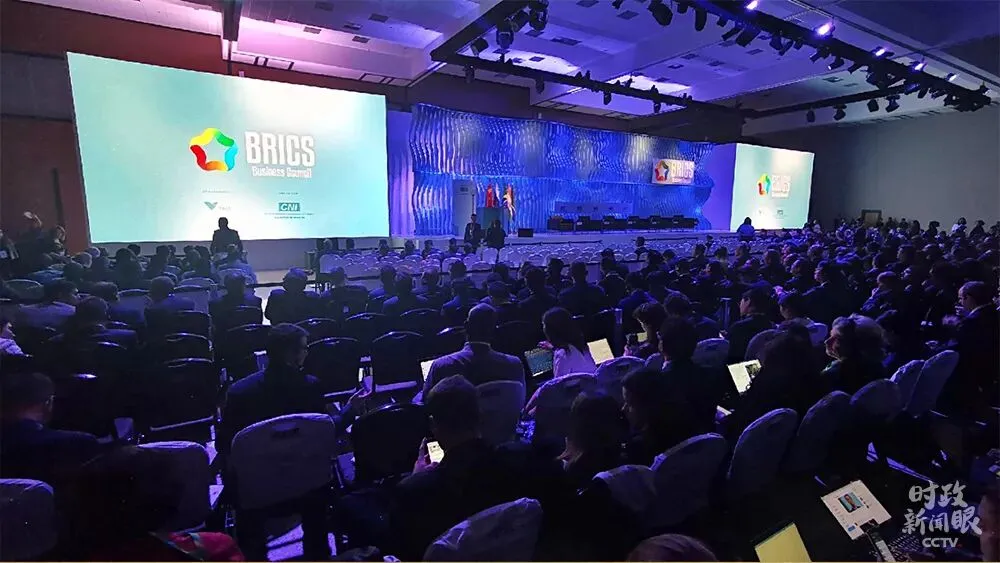 △13日傍晚,金砖国家工商论坛闭幕式会场。(央视记者张晓鹏拍摄)