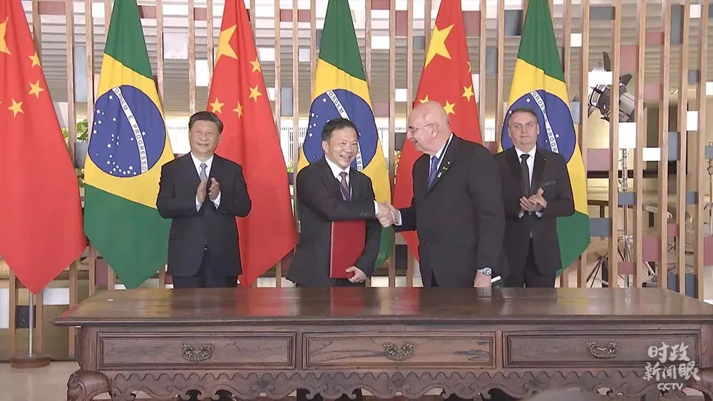 当地时间13日上午与博索纳罗会谈后,他们共同会见了记者,并见证多项双边合作文件的交换。