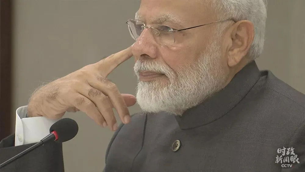 △与习主席会谈时的莫迪。习近平对他说:我同你在金奈成功举行会晤,谈得很好。我欢迎你明年到中国再次会晤。(央视记者荆伟拍摄)