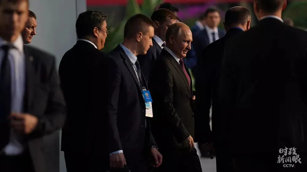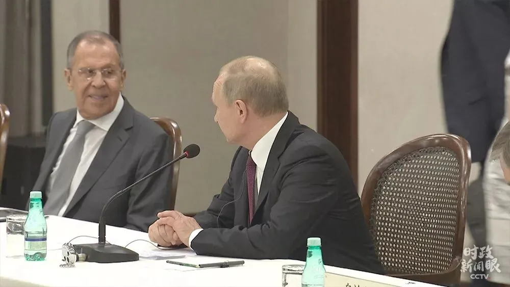 △会谈桌上的普京和拉夫罗夫。习近平对他们说:新时代要有新举措、新作为。我们双方要继续共同努力,更好造福两国人民,惠及地区及世界。(央视记者荆伟拍摄)