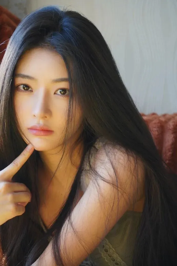采用近景平视角度,镜头聚焦于眼部与唇部,利用侧光让面部光影层次更丰富。让人物用手指轻触下颌,眼神直视镜头,放大情绪张力。背景选择浅色系墙面做虚化处理,避免干扰主体,同时让发丝自然垂落遮挡部分脸颊,弱化面部线条,突出眼神的清澈与氛围感。