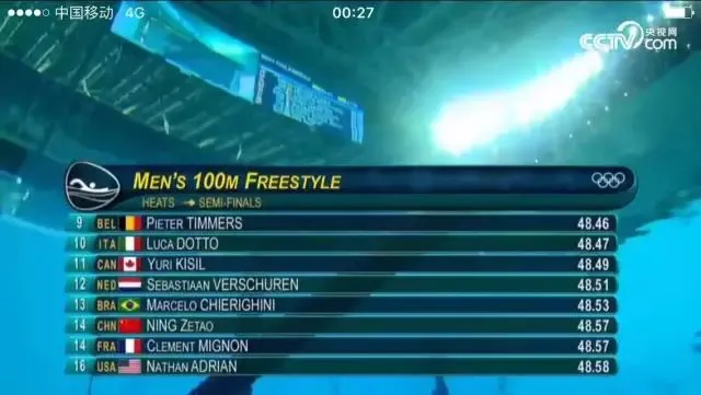 “宁泽涛和你们说早安。把你的日历都设定好,他的第一项比赛时候下周二中午,100米自由泳”