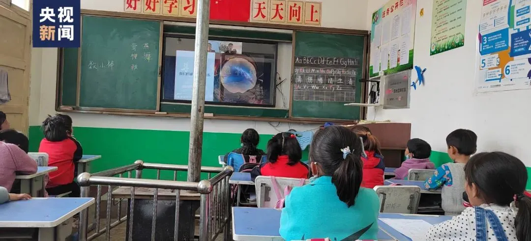 △今年3月,刘博洋给乡村小学的孩子们远程讲授天文课。