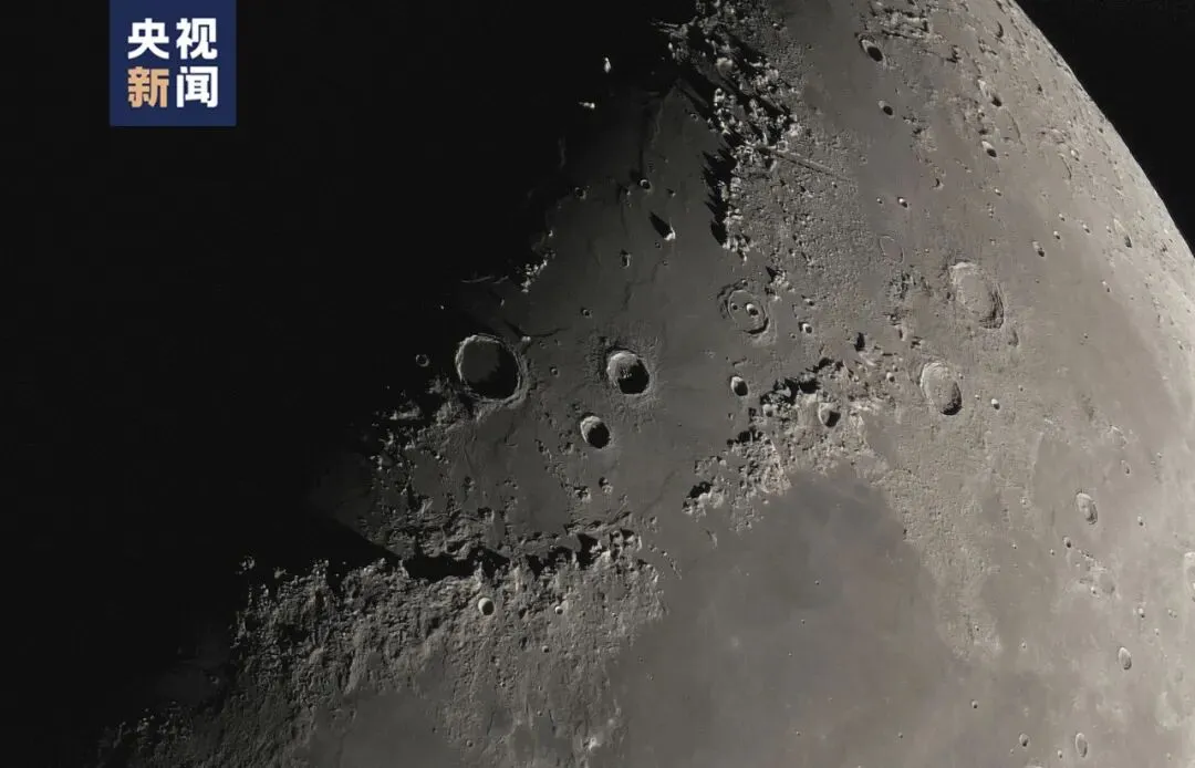△刘博洋在地面借助望远镜拍摄的月亮特写。