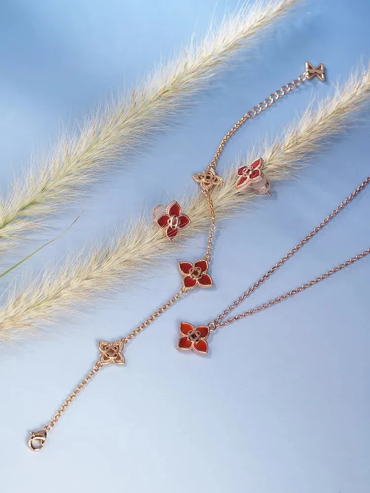 • 铜×红玛瑙贴合年度骐骥红流行色,传递热情与力量,适合职场女性日常佩戴,为通勤造型增添一抹亮色。