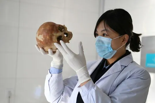 吕薪名通过观察死者头骨搜集相关信息 张瑶摄