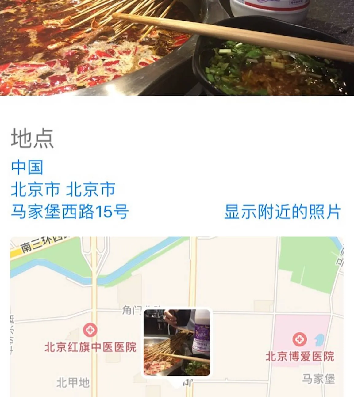 测试者给朋友发了一张吃火锅的照片,他的朋友仅凭微信聊天中的一张“原图”,就完全找到了火锅店的具体位置。看起来高智商的背后,其实是智能手机里的照片定位系统的“功劳”。特别是照片原图,分分钟暴露你的位置信息。