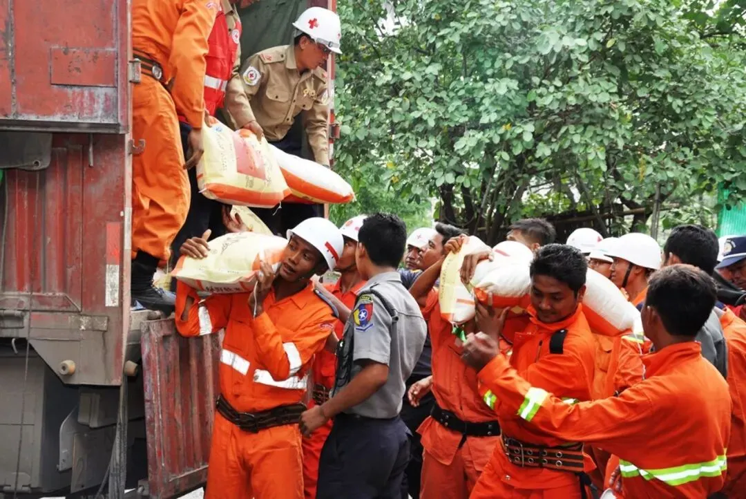 ▲2015年8月7日,云南省政府向缅甸灾民捐赠的救灾物资运抵曼德勒。持续降雨导致缅甸14个省邦中的12个省邦遭受不同程度水灾。