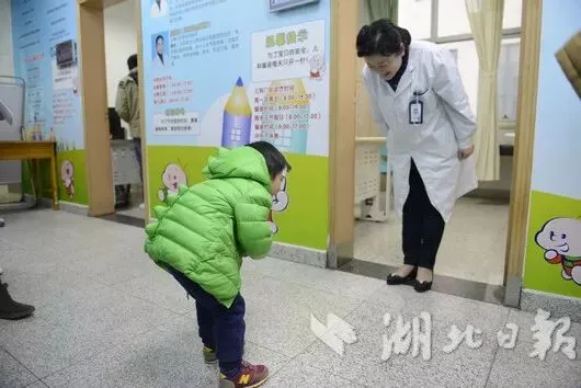 女孩还在妈妈的提示下