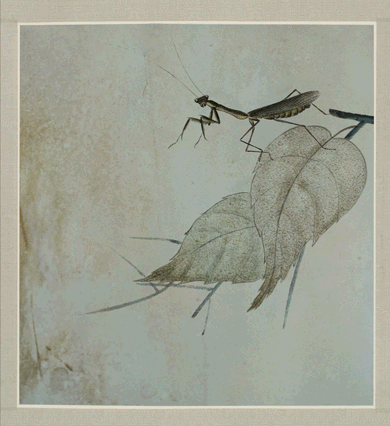 工笔草虫在画中起到画龙点睛的作用,动静结合,看似无声,却仿佛可听见虫鸣。
