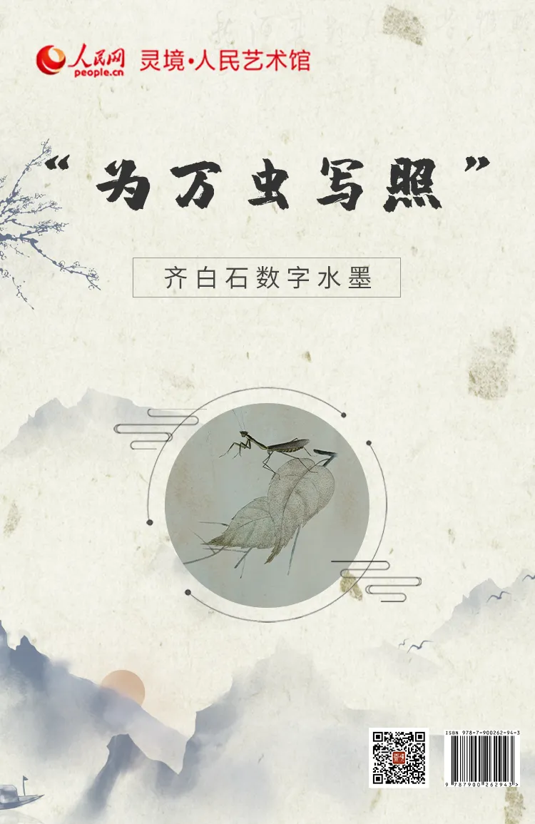 灵境·人民艺术馆推出“为万虫写照”齐白石数字水墨,以齐白石的《葡萄天牛图》《长叶蝗虫图》《莲蓬蜻蜓图》《树枝秋蝉图》《贝叶螳螂图》5幅作品为原型,分别制作成高清动态视频数字作品,每款各发行1000份,每份定价128元。