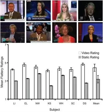 他们准备了一些2秒钟的视频,以及从这些视频中截图出来的1200帧静态图,然后让实验参与者打分评价视频或截图中的20个人有多好看。