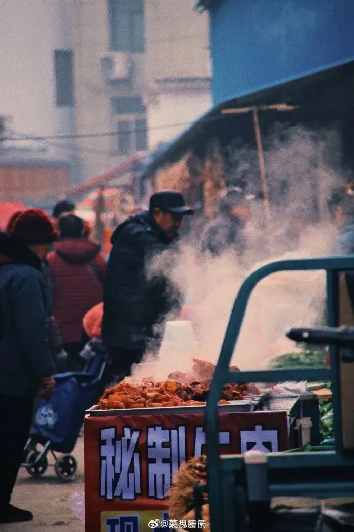 摊位上热气袅袅,笼罩人间的繁忙与悠闲。